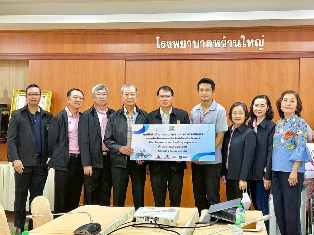 โดยมีนายแพทย์ไพศาล ดั่นคุ้ม ประธานมูลนิธิ อย. พร้อมทั้งคณะกรรมการและที่ปรึกษามูลนิธิ อย. ร่วมเดินทางไปยังโรงเรียนบ้านนาแพงโคกน้ำสร้าง เพื่อมอบเงินเป็นทุนการศึกษา จำนวน 15 ทุน ทุนละ 2,000 บาท รวมถึงอุปกรณ์กีฬา และสนับสนุนกิจกรรม อย. น้อย มูลค่า 100,000 บาท ทั้งนี้ยังได้เดินทางไปยังโรงพยาบาลหว้านใหญ่ เพื่อมอบครุภัณฑ์ทางการแพทย์ ได้แก่ ไม้ค้ำยัน จำนวน 20 คู่ , รถเข็นนั่ง จำนวน 20 คัน, เครื่องผลิตออกซิเจน 10 ลิตร จำนวน 2 เครื่อง, ที่นอนลม จำนวน 2 หลัง, เครื่องดูดเสมหะ จำนวน 2 เครื่อง, เครื่องวัดความดันอัตโนมัติ จำนวน 10 เครื่อง, เครื่องจับออกซิเจนปลายนิ้ว จำนวน 10 อัน, หน้ากากอนามัย จำนวน 20 ลัง เครื่องผลิตออกซิเจน 5 ลิตร จำนวน 1 เครื่อง, Walker Invalid’s Front Wheels – HD (อุปกรณ์ช่วยเดินชนิดล้อด้านหน้า) จำนวน 4 ชิ้น, Walker Invalid’s Heavy Duty (อุปกรณ์ช่วยเดินชนิด 4 ขา) จำนวน 5 ชิ้น, Commode Chair (เก้าอี้นั่งถ่ายแบบพับได้) จำนวน 2 ชิ้น, Elbow Crutch Adjustable (ไม้เท้าค้ำศอกปรับระดับ) จำนวน 2 ชิ้น, Walker Invalid’s Reciprocating (อุปกรณ์ช่วยเดินชนิด 4 ขา) จำนวน 2 ชิ้น, Walking Stick (ไม้เท้าขาเดียวแบบด้ามจับนิ่ม) จำนวน 2 ชิ้น พร้อมทั้งมอบเงินสนับสนุนจำนวน 100,000 บาท