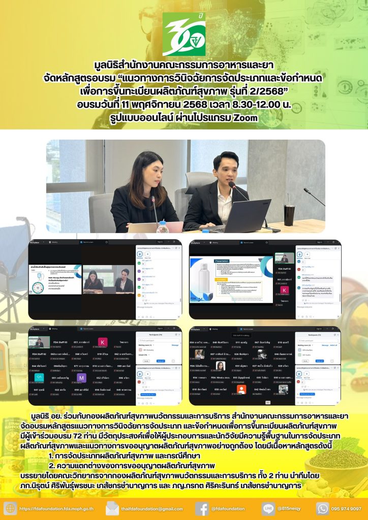 มูลนิธิ อย. ร่วมกับกองยา จัดอบรมหลักสูตรครั้งนี้มีผู้เข้าร่วมอบรมจำนวน 30 ท่าน
